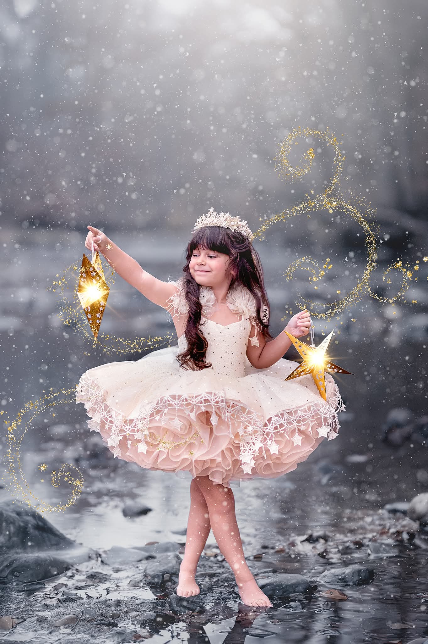 Stardust Magic is for the dreamers — the little ones who believe in sparkle, snowflakes, and storybook endings. From glittery birthday shoots to winter wonderland adventures, this piece brings timeless elegance and just the right amount of drama.