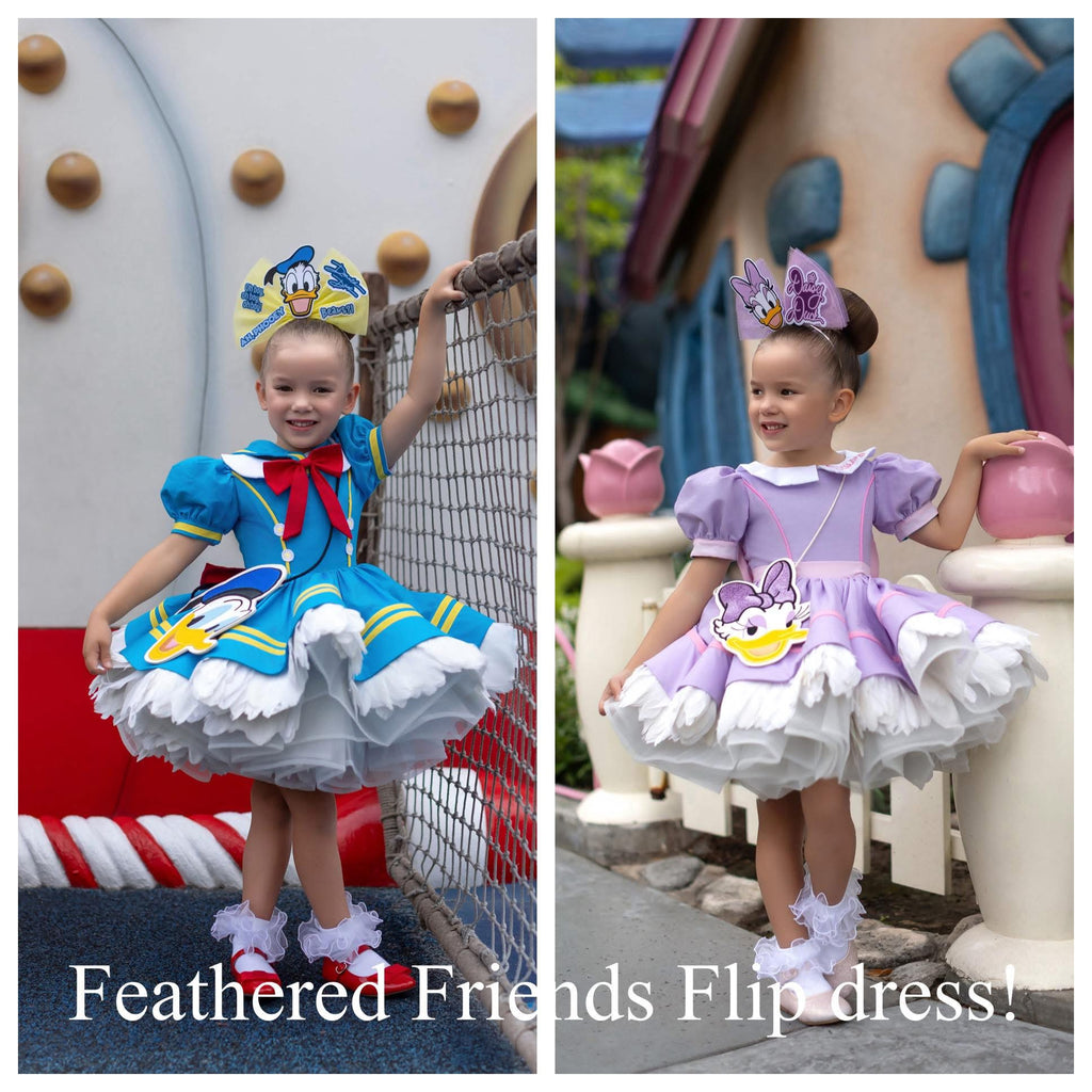 We’re flipping out over this one! Introducing our brand-new Feathered Friends Flip Dress — a whimsical two-in-one creation that brings the magic of both Donald and Daisy to life in one unforgettable piece.