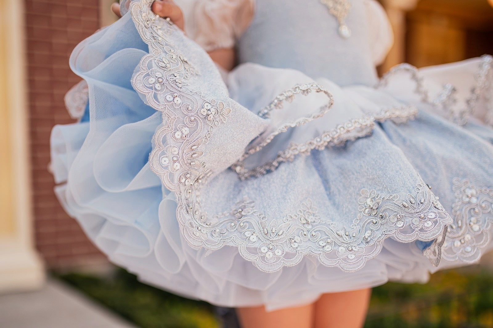 • Soft blue tones layered with sparkle tulle for an ethereal finish