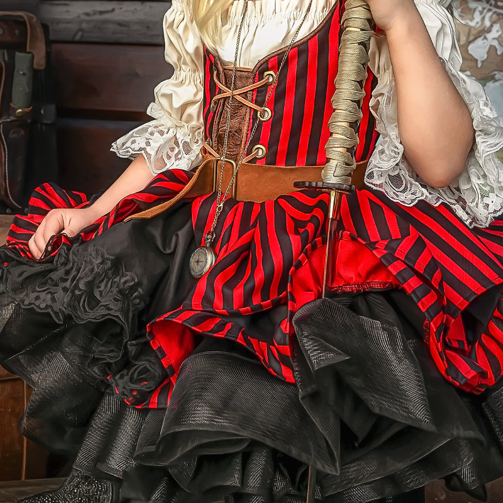 From the festive fall fair to spooky season parades and magical park visits, this pirate princess look is made for twirls, treasure hunts, and timeless photo moments.